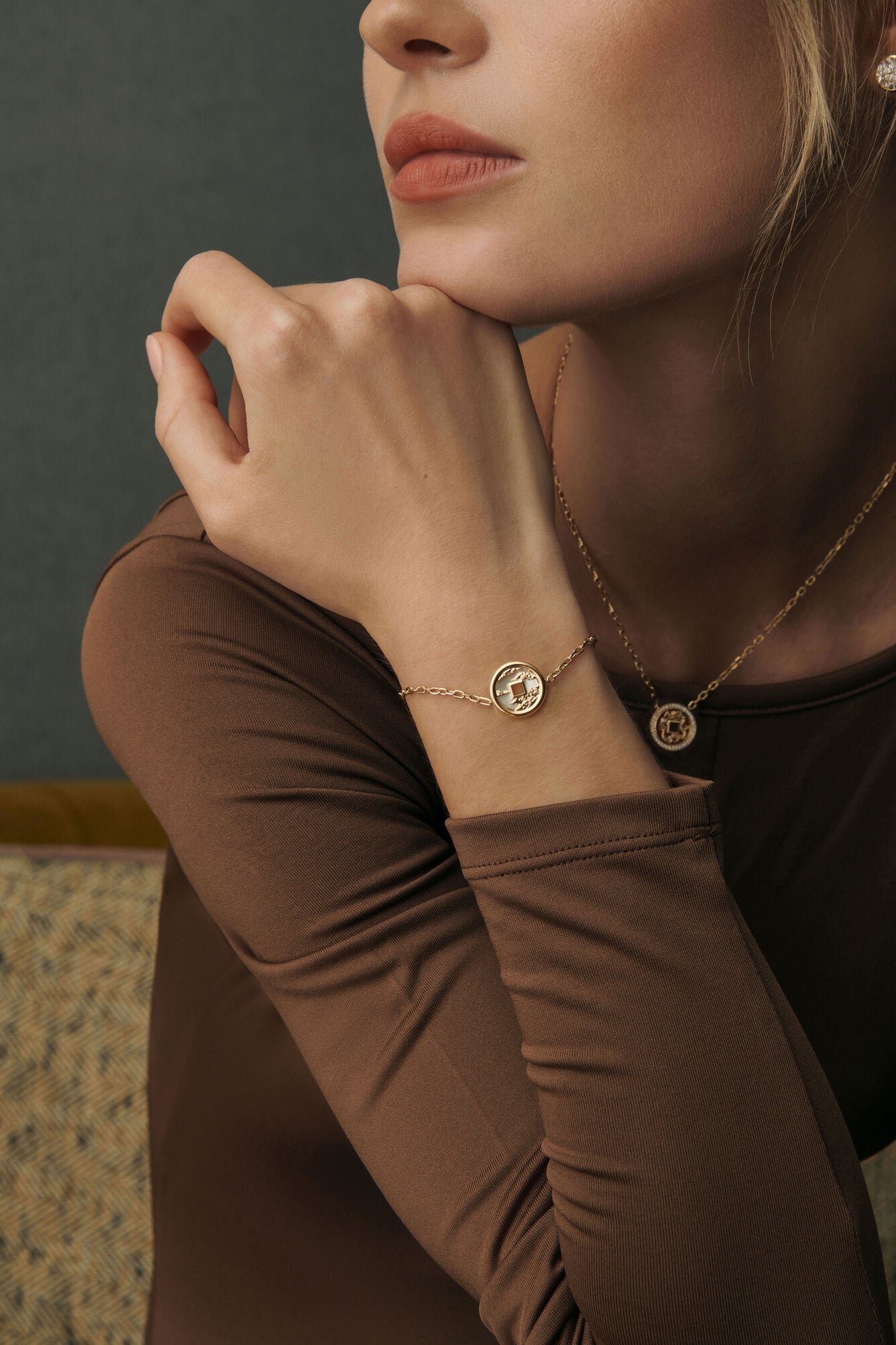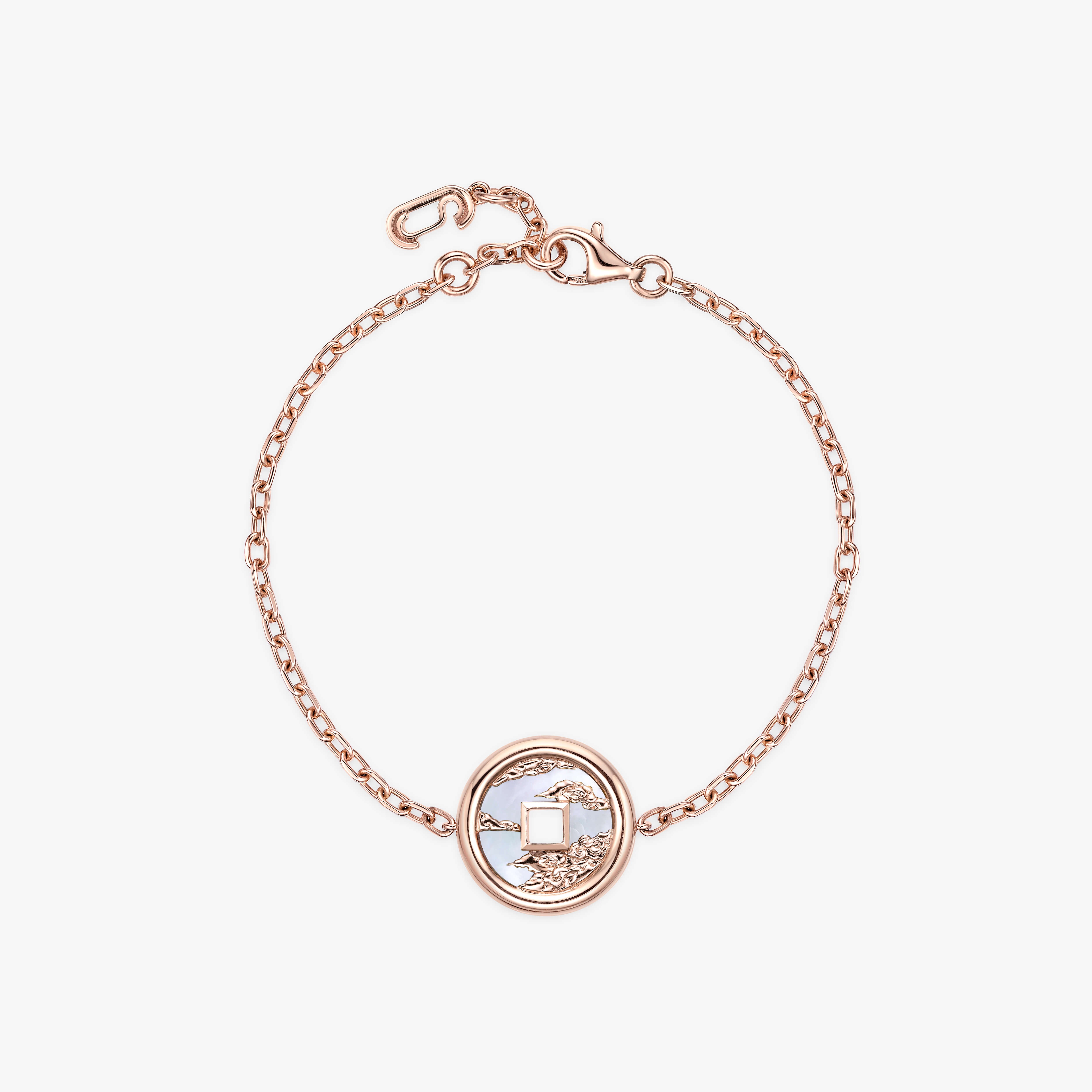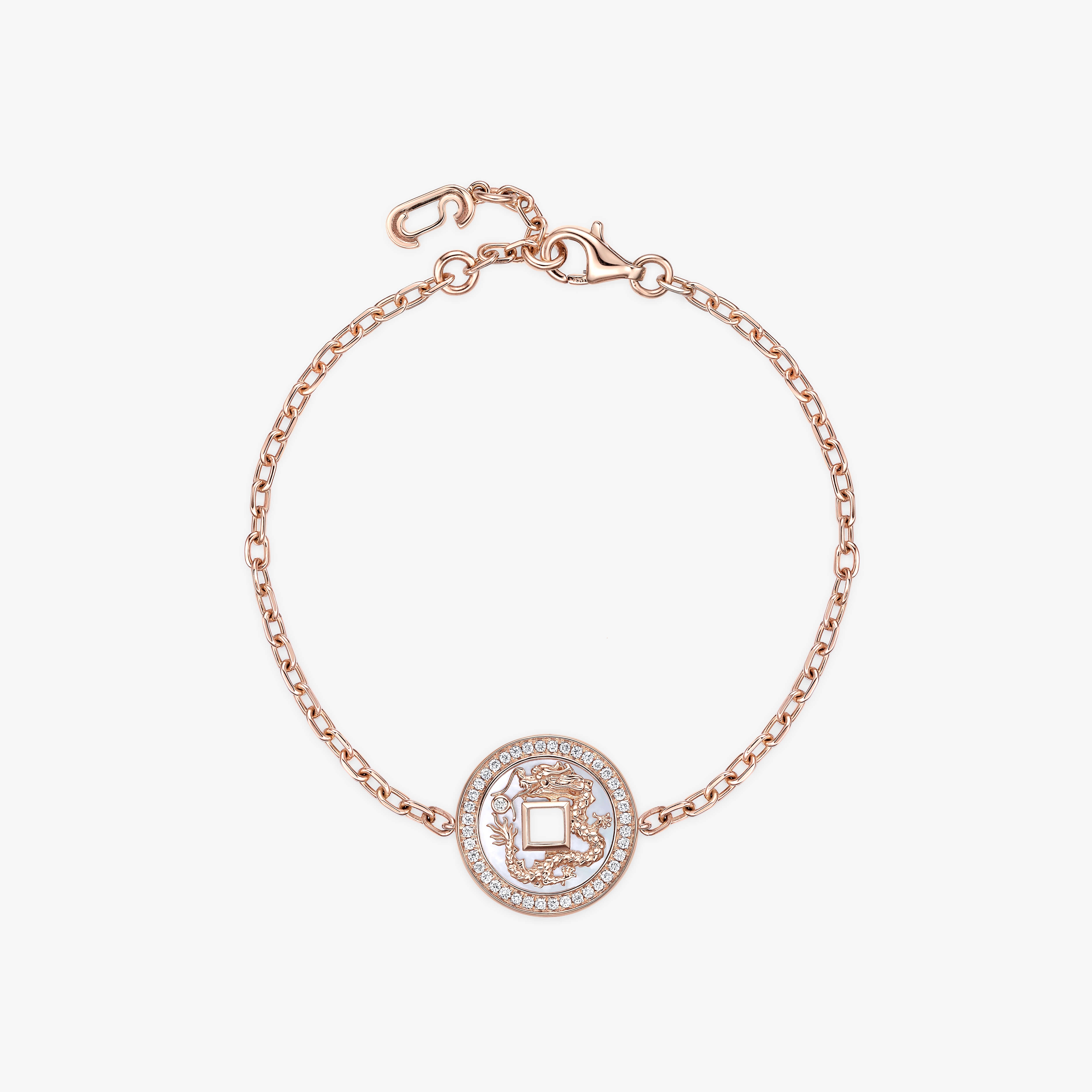 Our Eternal Dragon Bracelet is crafted from 18K recycled rose gold and adorned with ornamental stones, including onyx, mother of pearl, jade, red jasper, turquoise, and lapis lazuli. This exquisite piece blends traditional artistry with modern elegance.
