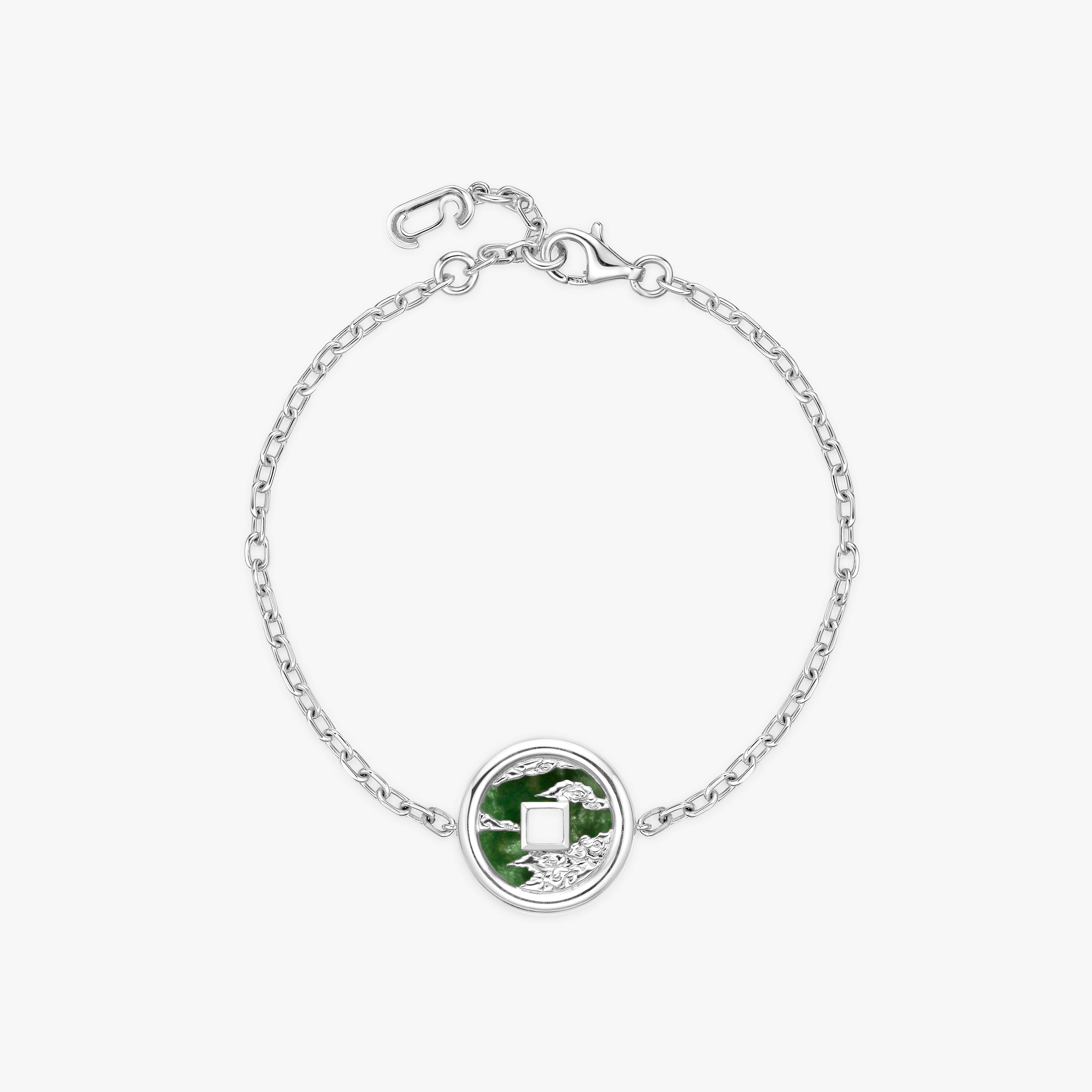 Incorporating a Feng Shui coin for prosperity, both the dragon motifs and clouds are meticulously carved by a master artisan, and the piece is designed in consultation with a Feng Shui master to enhance positive energy. It looks stunning worn alone or stacked with other pieces.