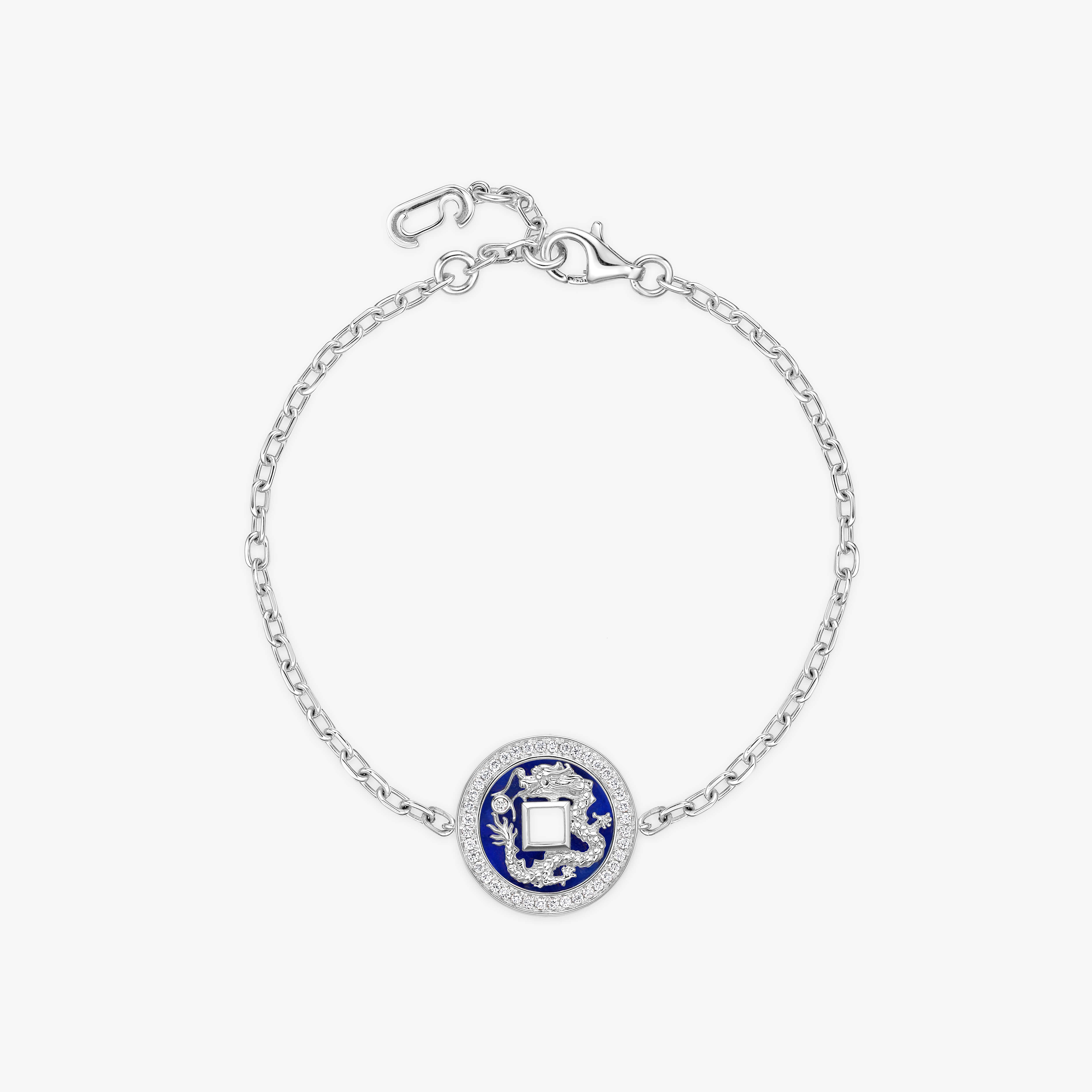 The intricate dragon motifs symbolize strength and connection, while the diamond embodies the essence of the dragon pearl, a legendary treasure in Chinese mythology representing wisdom and power. This necklace also showcases auspicious clouds that symbolize good fortune and blessings.