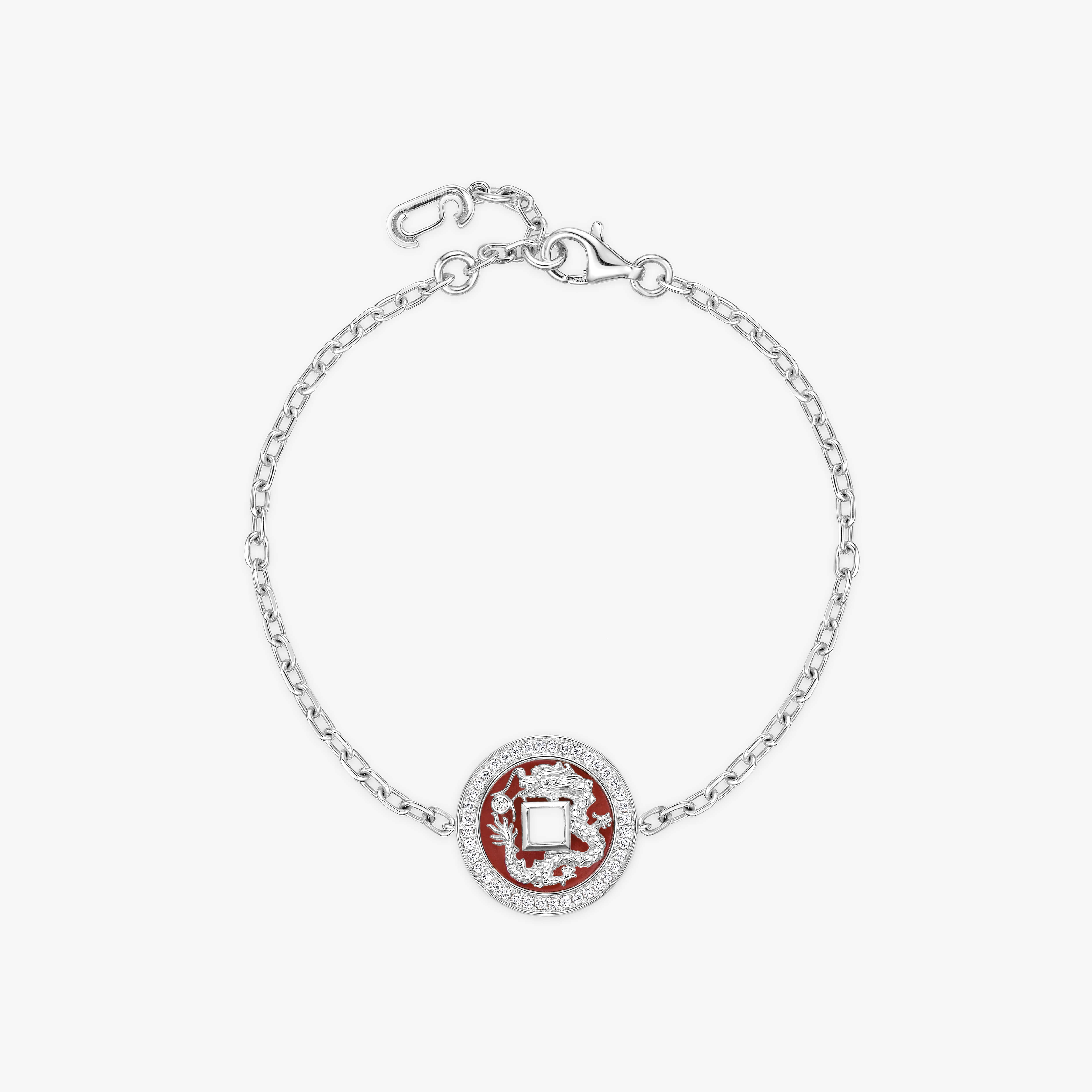 The intricate dragon motifs symbolize strength and connection, while the diamond embodies the essence of the dragon pearl, a legendary treasure in Chinese mythology representing wisdom and power. This necklace also showcases auspicious clouds that symbolize good fortune and blessings.