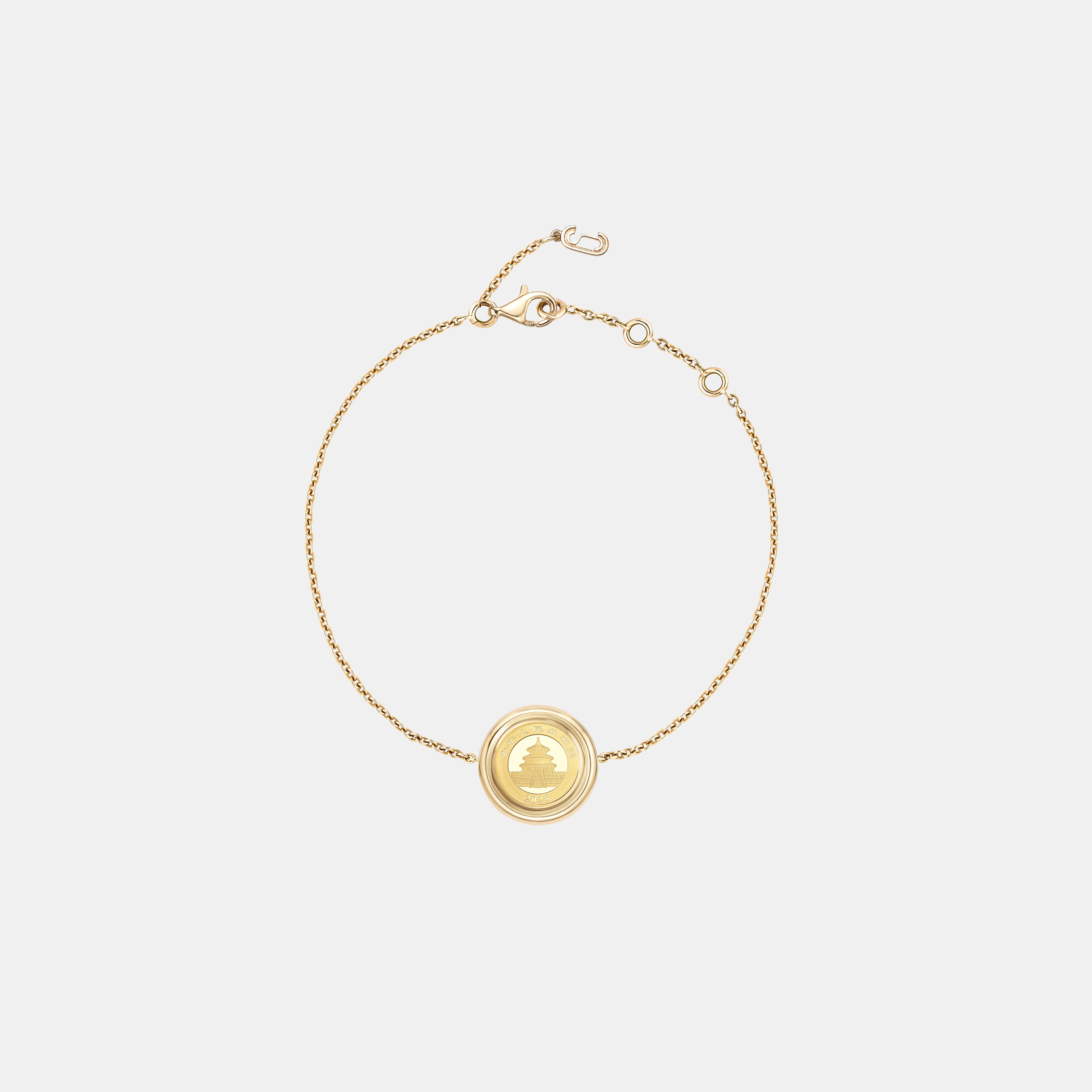 The Chinese Gold Panda Bracelet features the 1g Chinese Gold Panda coin (10 Yuan denomination, 999.9 fine gold) set within a design inspired by our Signature Medallion, handcrafted in 18K gold and diamonds by our Hong Kong atelier. It transforms the iconic coin into an elegant piece to wear and keep, honouring a birth year, family story or new beginning.