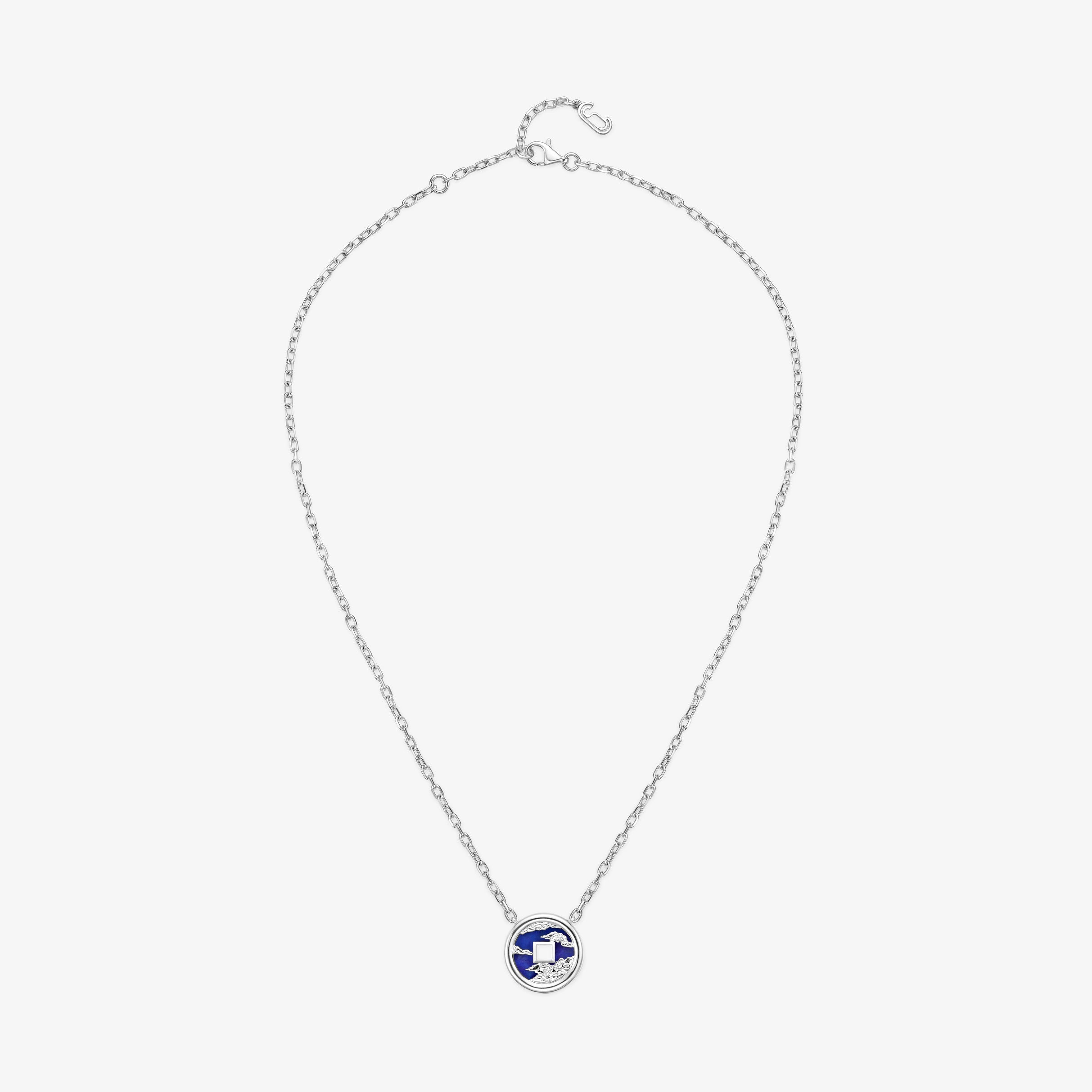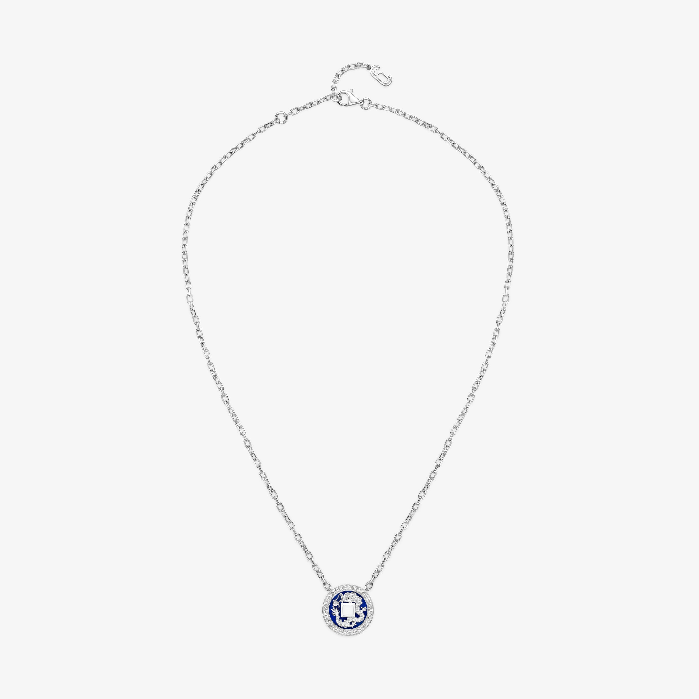 Our Eternal Dragon Necklace is crafted from 18K recycled white gold and adorned with ornamental stones, including onyx, mother of pearl, jade, red jasper, turquoise, and lapis lazuli. This exquisite piece blends traditional artistry with modern elegance.