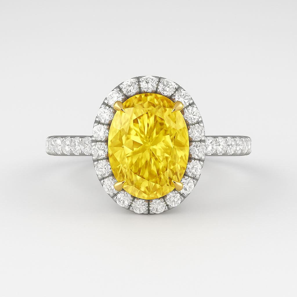 A 2.01 Light Yellow Oval Diamond and White Diamond Platinum Ring