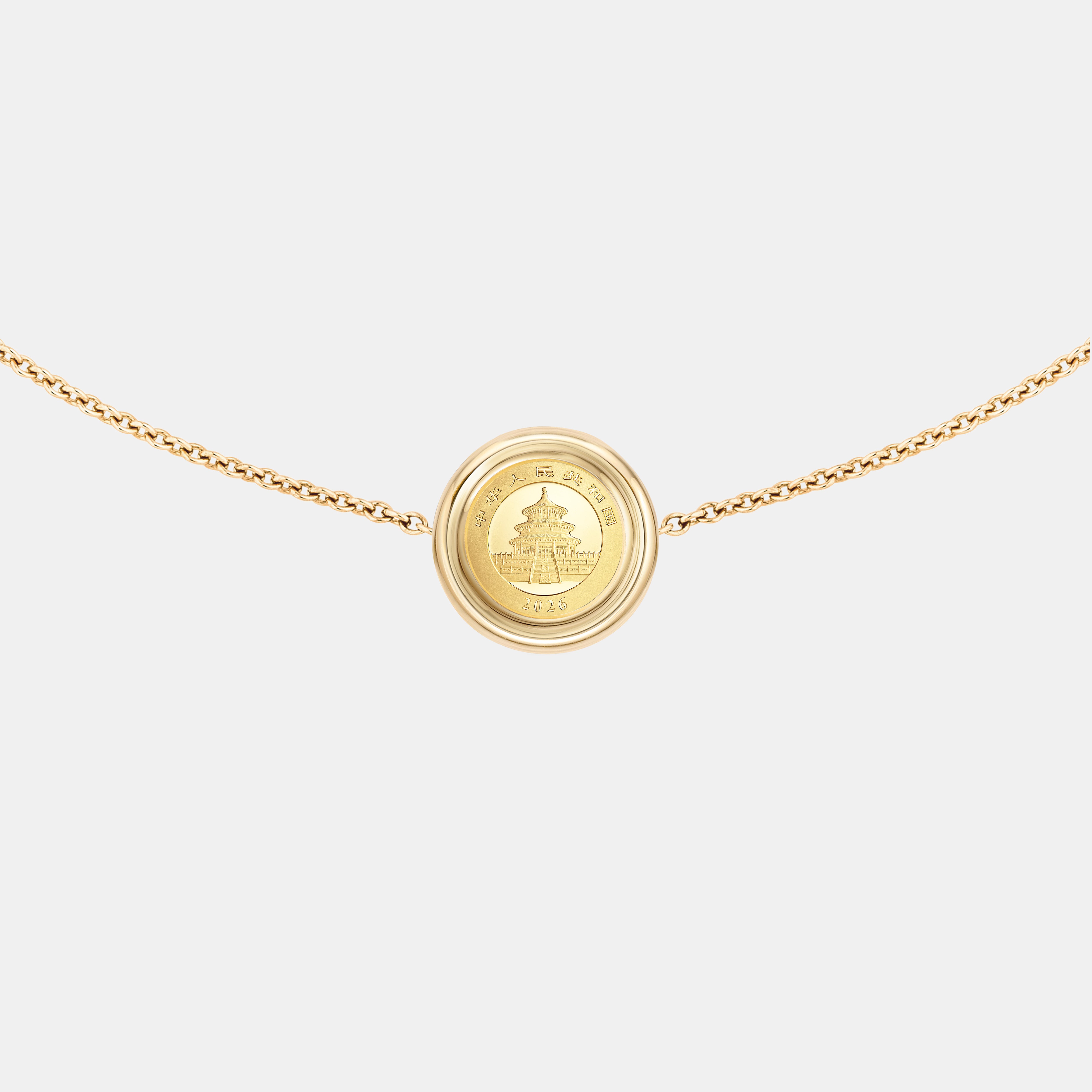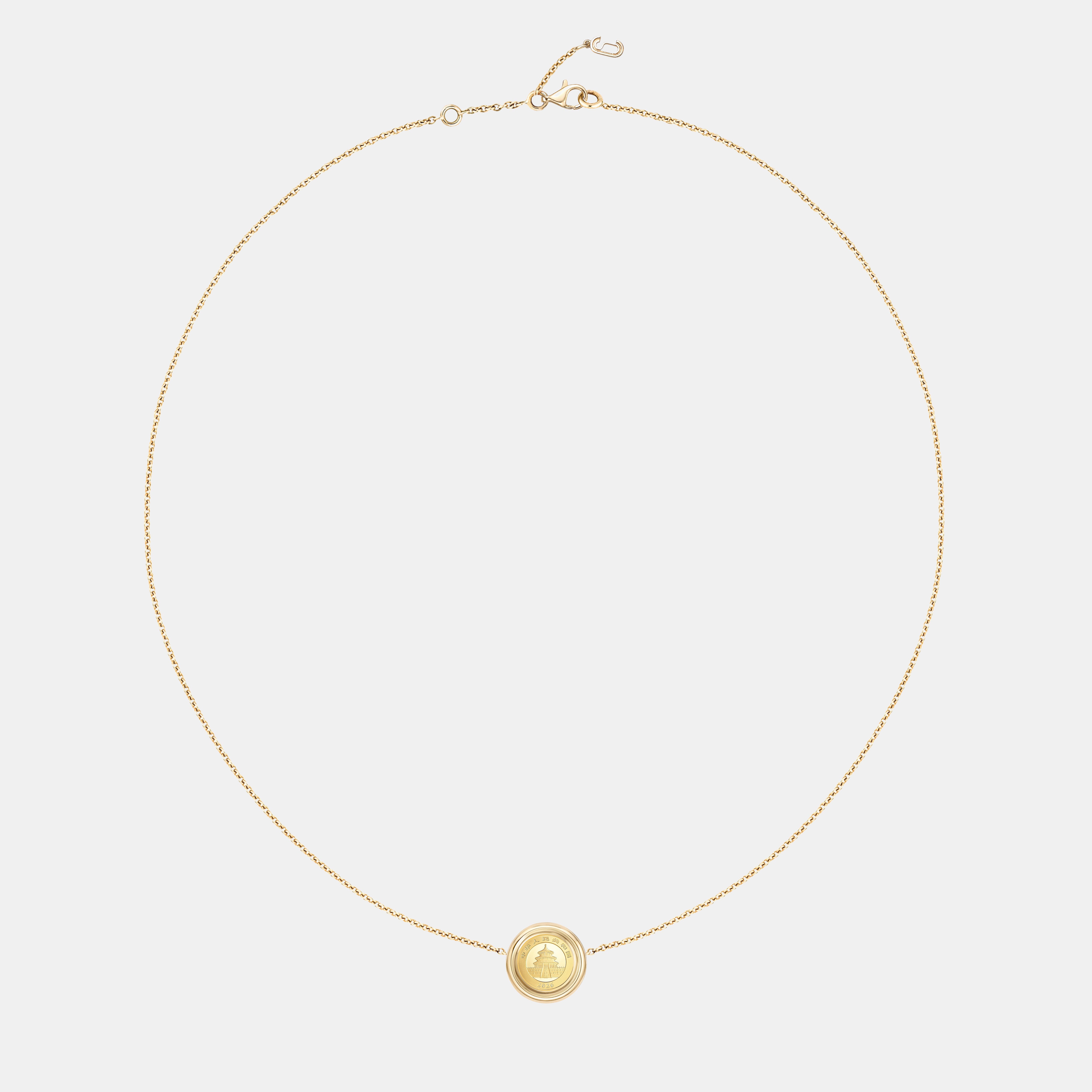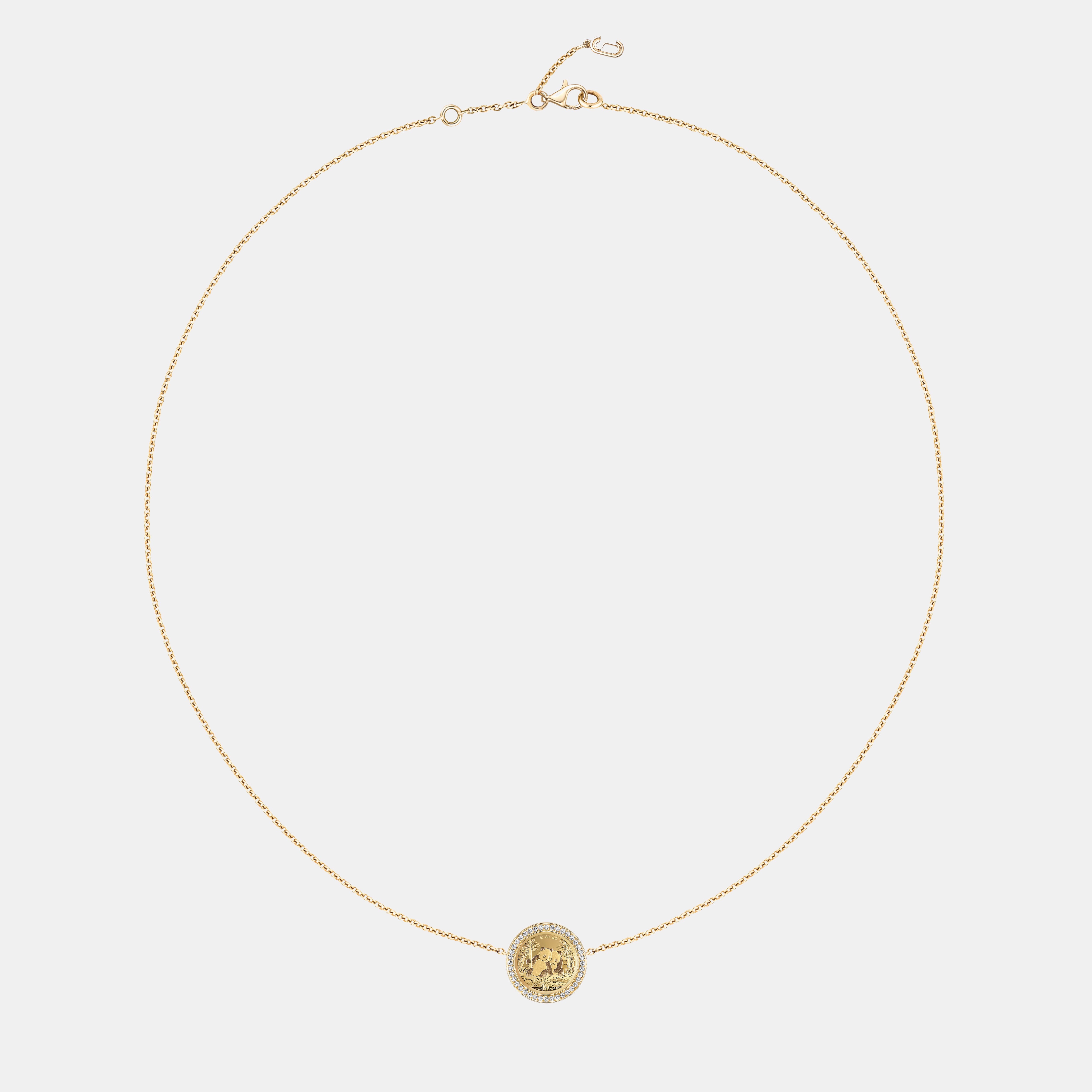 The Chinese Gold Panda Necklace features the 1g Chinese Gold Panda coin (10 Yuan denomination, 999.9 fine gold) set within a design inspired by our Signature Medallion, handcrafted in 18K gold and diamonds by our Hong Kong atelier. It transforms the iconic coin into an elegant piece to wear and keep, honouring a birth year, family story or new beginning.